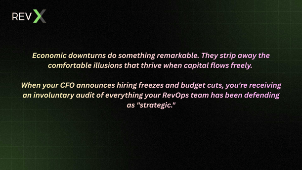 Key Takeaway: Economic pressure transforms budget constraints from obstacles into strategic clarity, revealing which RevOps activities actually generate revenue versus those that merely generate reports.
