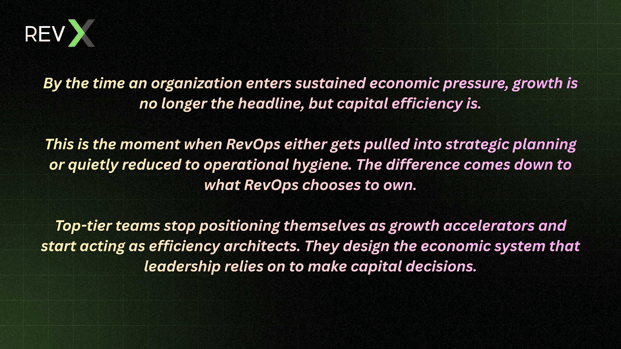 Resource scarcity reshapes RevOps from reactive process managers into strategic operators with the mandate to identify and eliminate waste.